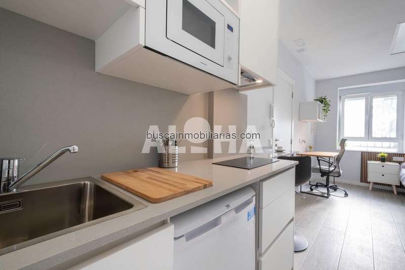 Cada una de las habitaciones de 16m2 se distribuyen en un espacio con cama doble de 135x200cm, zona de estudio con escritorio, silla y armario, cuarto de baño en suite, cocina tipo office y aire acondicionado frío/ calor.