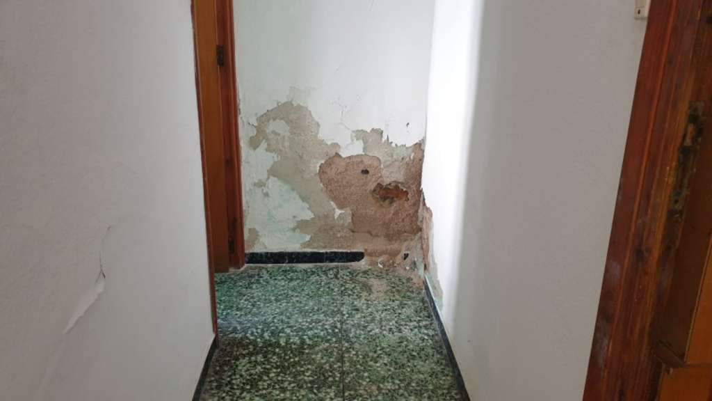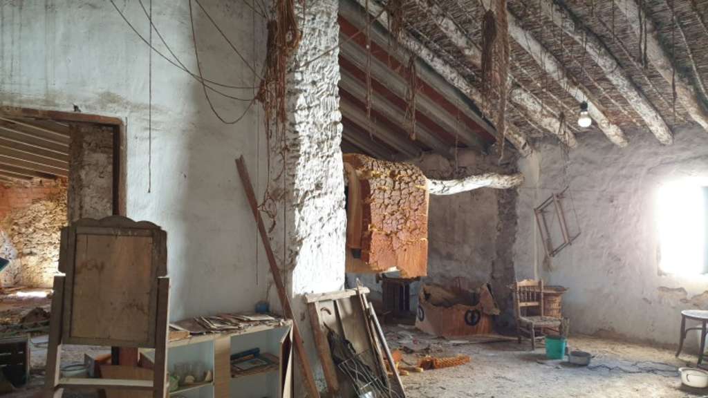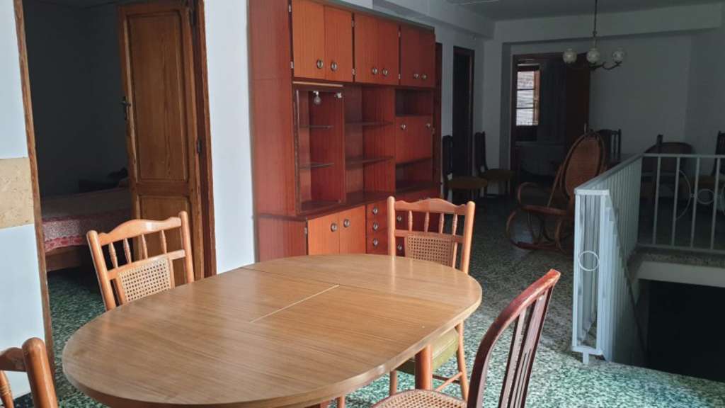 En la planta baja se encuentra prácticamente toda la vivienda. Al entrar, encontramos un salóncomedor con muebles antiguos, tres habitaciones que conservan los techos con viguetas de madera una de ellas, la principal, con balcón, además de una sala de estar con chimenea y una gran despensa, una cocina y un baño con plato de ducha. La casa dispone de ventanas con rejas de hierro.