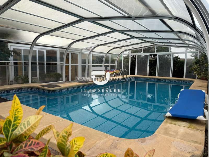 El exterior de la propiedad invita a disfrutar al máximo del buen clima. Rodeada de jardín y con un huerto propio, la parcela incluye una espectacular piscina climatizada, zona de cocina exterior con paellero y barbacoa, además de un aseo de servicio, lo que convierte este espacio en el lugar perfecto para reuniones, celebraciones o simplemente relajarse al aire libre.