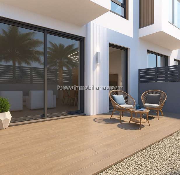 La vivienda se distribuye en dos plantas. En la planta baja encontramos un salón-comedor amplio y luminoso, una cocina office, una habitación doble ideal para invitados o como despacho, un baño completo con ducha, una práctica zona de lavandería y acceso a una terraza exterior y un patio interior.