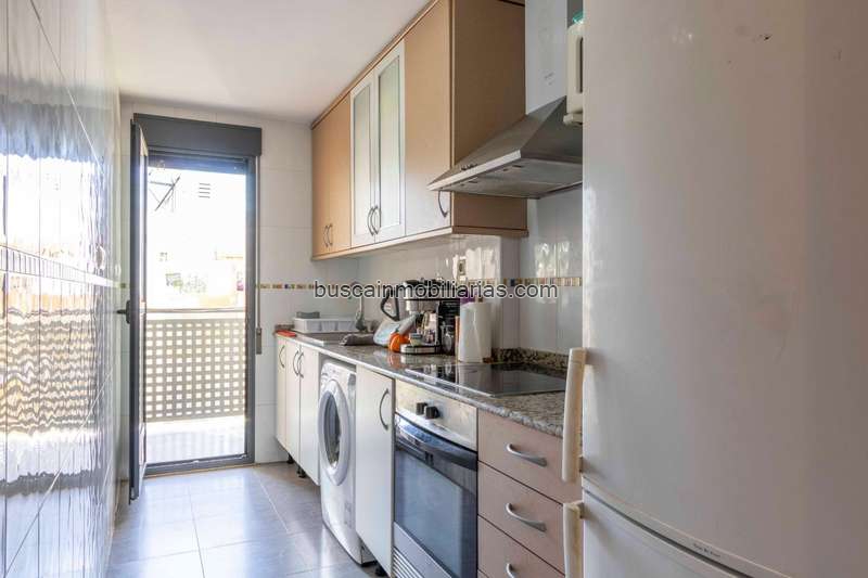 Cocina completa con balcón y posibilidad de abrir al amplio salón, por si eres de los que les gusta los espacios abiertos.