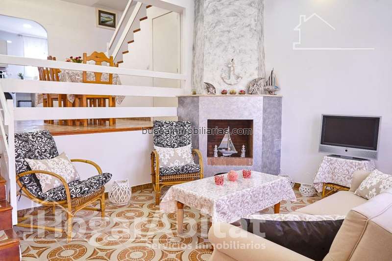Donde el fuego de tu chimenea encuentra el azul del mar: vive la magia de la primera línea en un adosado con alma y confort total. Este adosado ofrece un entorno tranquilo y acogedor. La vivienda cuenta con cinco dormitorios, de los cuales tres son dobles. La cocina es independiente y se entrega totalmente equipada. El salón-comedor es un espacio especialmente luminoso que cuenta con una acogedora chimenea, ideal para los meses de invierno. Dispone de dos baños completos. Plaza de garaje incluida en el precio. Cuenta con calidades como armarios empotrados, ventanas y puertas de madera, y suelos de gres. Está ubicado en un residencial con piscina comunitaria, en una zona muy tranquila, junto a la playa, y cerca del Parque Natural de la Albufera. ¡No te pierdas esta gran oportunidad de vivir en primera línea de playa, te encantará!