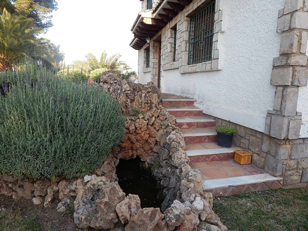 REFERENCIA: V1B534 Adaix vende chalet en Torrent. Ubicado en Cumbres de Calicanto. Con una parcela de 1.200 m2. y una construcción de 450 m2. La casa se encuentra integrada en un fabuloso jardín con una pequeña pradera con palmeras. Distribuida en tres niveles: semisotano, donde encontramos la zona de garaje con capacidad para tres coches, dos trasteros, un cuarto de baño con ducha, cocina totalmente amueblada con una espectacular chimenea y salón comedor, además de una estupenda bodega integrada en una cueva natural. A la primera planta puede accederse desde las escaleras del sótano o bien por la entrada principal, donde encontramos un amplio hall, que se abre al salón comedor con una formidable chimenea, que hace que las tardes de invierno sean más acogedoras. Se aprecia también la singular escalera que da a las dependencias de arriba y la original lámpara de forja. Se halla en esta planta un cuarto de baño completo, una cocina totalmente amueblada con una original bancada, que junto con el salón comedor se accede a uno de los principales encantos de la vivienda, este es, las impresionantes vistas de las que se puede disfrutar. La segunda planta presenta un total de cuatro dormitorios con armarios empotrados, dos cuartos de baño completos y uno de ellos dentro de la habitación de matrimonio. Cabe destacar también las vistas que se aprecian desde los dormitorios. Cuenta este inmueble con solados de marmol, aire acondicionado friocalor, alta en agua y electricidad. Se puede recrear en la estupenda piscina con vistas, con unas medidas aproximadamente de 8 m2. x 4 m2. y con depuradora.