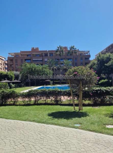 Tiene 3 habitaciónes dobles, una con el baño en suite, cocina equipada con todos electrodomésticos, gran terraza de 40 metros cuadrados con vistas al parque con piscina comunitaria, y la otra de unos 30 metros cuadrados con acceso desde la cocina. La residencial tiene seguridad 24 horas, buenos vecindad y mucha tranquilidad. Situado al lado del Palacio de Congresos, Mediamarkt y metro Beniferri.