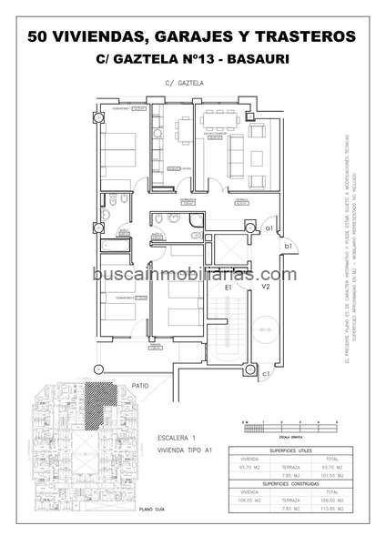 La vivienda cuenta con 106 m2 construidos más una terraza de 7,85 m2, distribuidos en tres dormitorios, dos baños, luminoso salón comedor y cocina independiente.