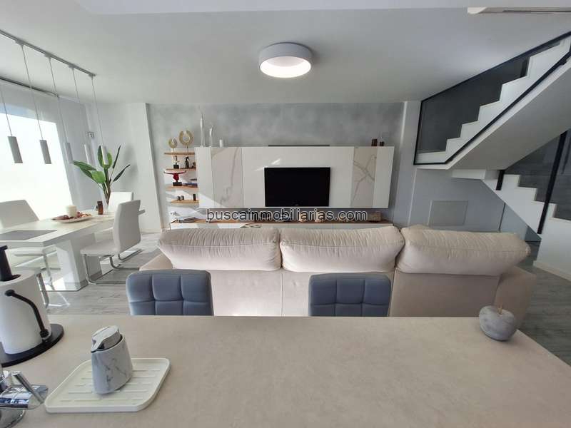 La planta baja ha sido reformada para crear un espacio abierto y diáfano, integrando la cocina con el salón mediante una cocina americana en isla, moderna y totalmente equipada, perfecta para cocinar y compartir momentos con familia y amigos.