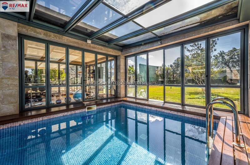 *Planta 2: Gran Suite Senior con baño, jacuzzi, salón, armarios empotrados y unas privilegiadas vistas al jardín por donde el sol entra por la mañana., 3 habitaciones dobles con armarios, 2 baños completos con ducha, lujoso salón-comedor, gimnasio acristalado que permite disfrutar de la naturaleza al practicar ejercicio y piscina cubierta climatizada que se puede usar todo el año con vistas al jardín. Habitación del pánico.